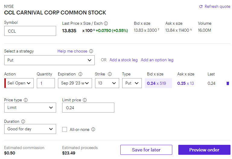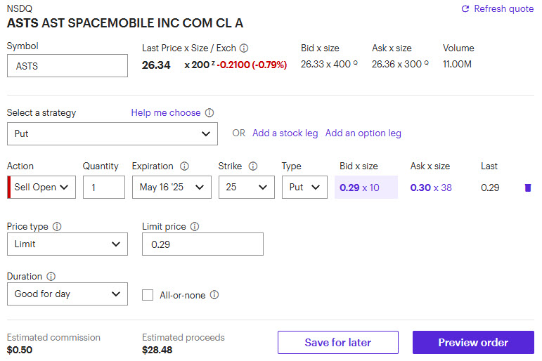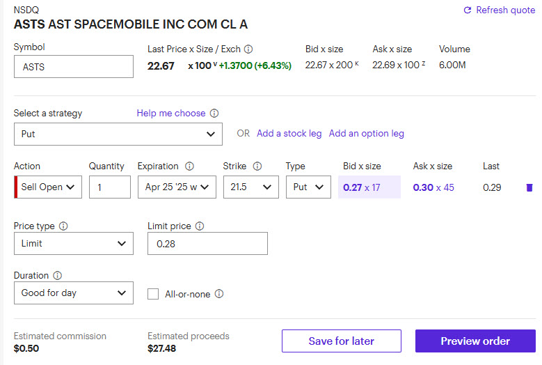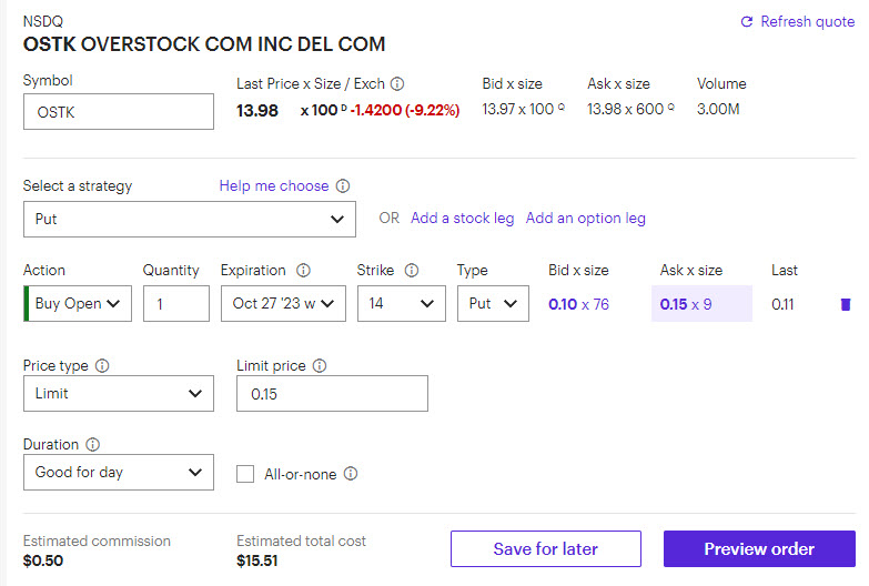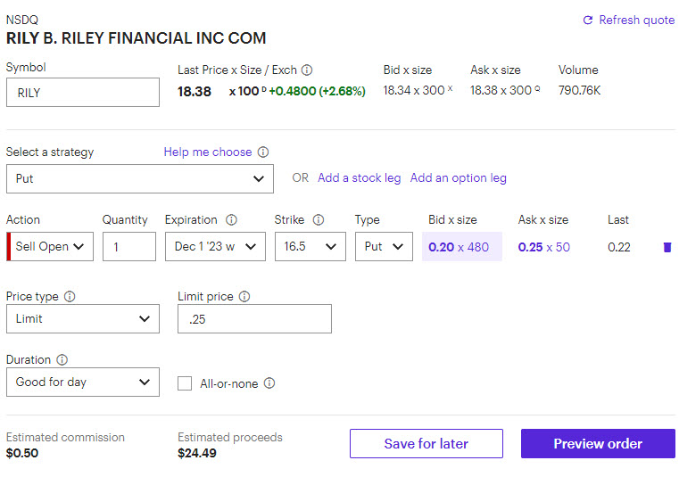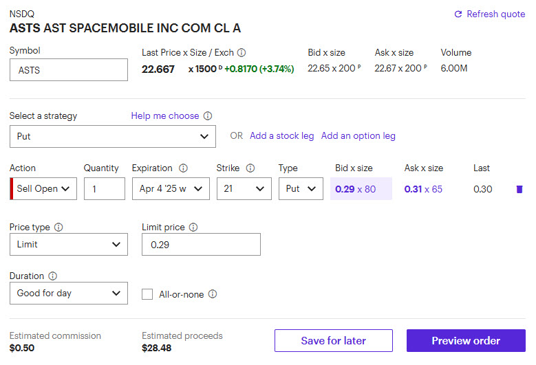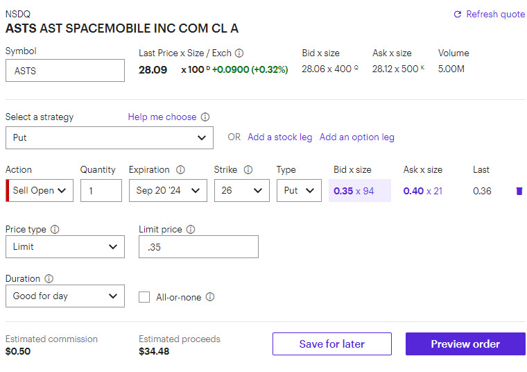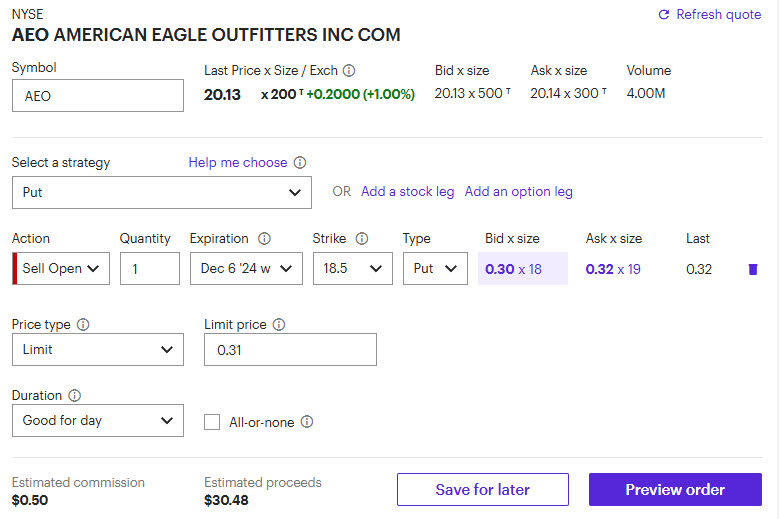 In the live session today we sold the FLY November 14th 15.5 put in the 25-30 cent range. You’ll need 1,550 per put sold in a cash account to make the trade. Earnings are after close today. I’ll send out closing info on Friday.