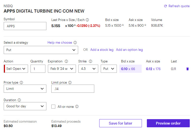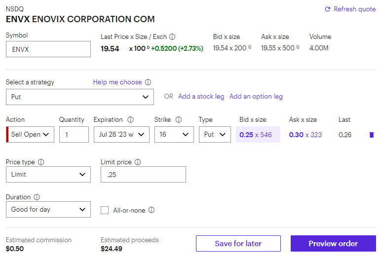 In both cases, I will send out closing instructions, even if those instructions are to just let them expire for zero. If the stock is too close to our strikes on Friday, I’ll likely try to close for 5 or 10 cents. Both trades can be found below. Remember, we are selling to open the puts and these are cash secured. You need to have $ 1,600 in your account for ENVX and $ 950 for APLD. (If I was only choosing one myself, I’d do ENVX, but either trade is reasonable if you don’t want to/don’t have the capital to do both.)
