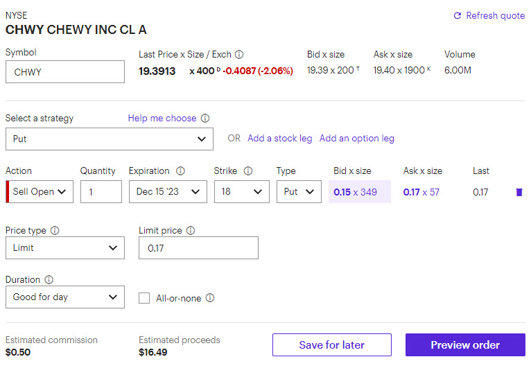 In both cases, I will send out closing instructions, even if those instructions are to just let them expire for zero. If the stock is too close to our strikes on Friday, I’ll likely try to close for 5 or 10 cents. Both trades can be found below. Remember, we are selling to open the puts and these are cash secured. You need to have $ 1,450 in your account for FSLY and $ 1,600 for TRIP. (If I was only choosing one myself, I’d do FSLY, but either trade is reasonable if you don’t want to/don’t have the capital to do both.)