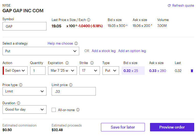GAP is up nearly 10% today, so our puts are definitely safe to let expire for zero. No action needed – we’ll collect the full premium.