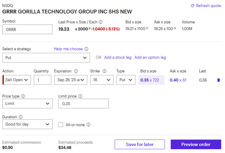 GRRR share price is well above our short put strike, so no action needed. We’ll let it expire for zero and collect the full premium.
