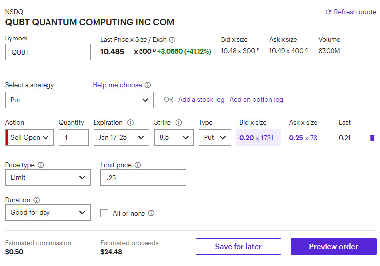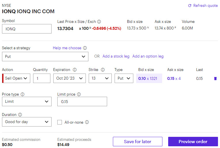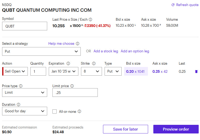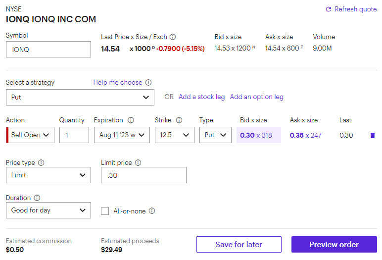 Our trade today is in IONQ. We’re selling the 12.50 put for around 30-35 cents. Details can be found below. Earnings in IONQ are tomorrow after close.