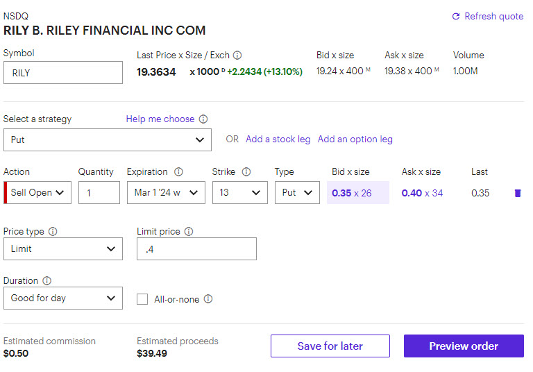 MARA has jumped today, so we can let our 15 puts expire for zero. No action is necessary. We sold the puts for around 26 cents, which works out to be a 1.7% gain in under 2 days.