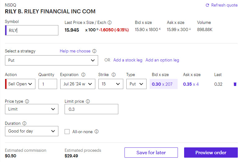 We’re selling (to open) the MARA July 7th 15 puts for around 25 cents. I prefer to let this one expire for zero if it’s away from our strike, but if you want to close, make sure it’s under 5 cents. I’ll send out a closing/expiration reminder text regardless.