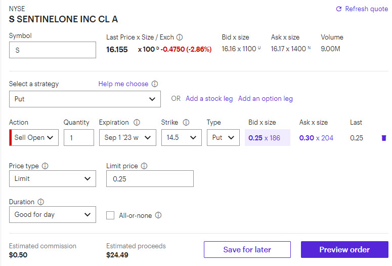 In the live session today we sold the AI September 5th 15 put for about 31-32 cents. You’ll need 1,500 in a cash account per put sold to make the trade. Earnings are today after close. I’ll send out closing info on Friday.