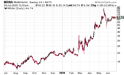Shares of Moderna Inc. (MRNA) jumped again to $65, and could accelerate higher. All after MRNA has advanced late-stage development of its coronavirus vaccine. Better, it just finalized the Phase 3 study protocol based on feedback from U.S. FDA.