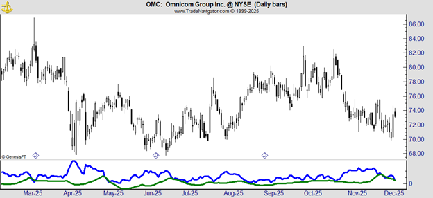 Earlier this month, Omnicom Group Inc. (OMC) provided a clear example of this process. The indicator identified a volatility extreme that signaled a potential transition. That signal was not based on a forecast, an earnings narrative, or an opinion about the advertising industry. It was based entirely on measurable behavior.