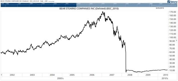 Bear was founded in 1923. The company survived the Great Depression, the high-inflation 1970s, oil booms and busts, tech bubbles and crashes, and countless other crises. Someone knowing that history might believe management was well-suited to navigate the housing crisis. Yet, subprime mortgages were too much to overcome.