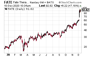Fate Therapeutics (FATE) is nearing $100 a share after announcing positive interim data from its Phase 1 study of FT516 in combination with rituximab for patients with relapsed / refractory B-cell lymphoma.