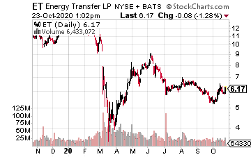 It transports 25% of all the natural gas and 35% of the crude oil produced in the U.S. Energy Transfer has paid its current quarterly dividend since it was last increased in late 2017.