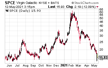Virgin Galactic (SPCE) is plunging back to Earth.