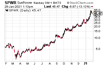 SunPower (SPWR) soared from $30 to $54 over the last few days, and could see brighter days ahead. With the Democrats in control of Congress, and Joe Biden in the White House, green energy is sure to take center stage. Two, Biden has already said the U.S. will rejoin the Paris Climate Accord. Three, Biden mentioned $2 trillion clean energy plan, with hopes for net zero emissions by 2050.