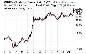 Workhorse Group (WKHS) is seeing higher highs after Joe Biden just the entire federal fleet will be replaced with electric vehicles.