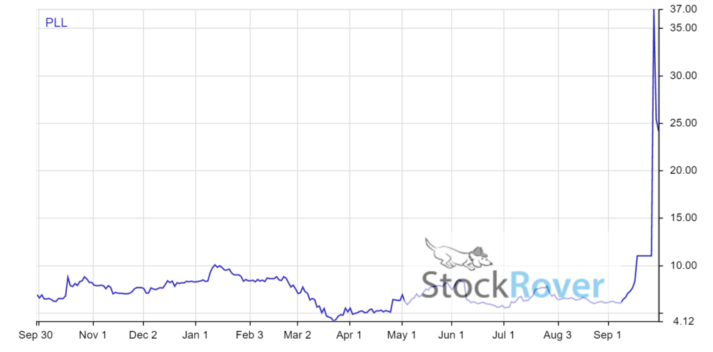 Shares of Piedmont Lithium (PLL) were up more than 340% earlier this week before pulling back on profit taking. The stock shot higher after signing a deal with Tesla to help secure lithium supply. “The deal is for five years of lithium-ore supply with an extension for another five years. Deliveries are expected to start in 2022,” according to Barron’s.