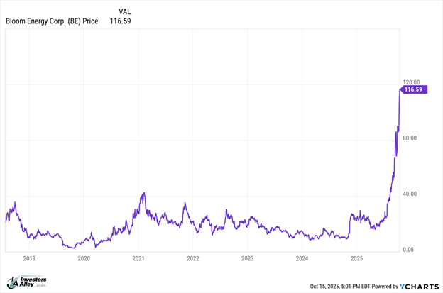 Bloom Energy added $5.4 billion in market cap on October 13 after announcing a $5.4 billion investment from Brookfield Asset Management (BAM). BE trades for a 133 P/E. I would buy BAM, which is a stock a regularly follow.