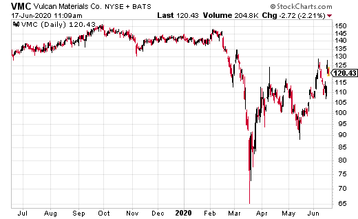 Shares of Vulcan Materials (VMC) gapped from a low of $107.94 to $123.15 this week on hopes for a potential infrastructure program.