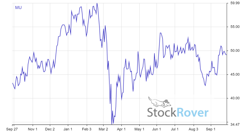 There is some reason to believe that MU may be set to move, especially with earnings coming up and all the volatility in the market. Even a $50 stock can see 20% swings over a short period of time.