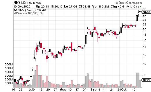 Options traders also seem to have a bullish view on NIO. In fact, one trader even made a multi-million dollar bet that NIO will remain above $20 through January 2022. Keep in mind, EV stocks tend to be extremely volatile…so in the realm of EV companies, that’s a very, very long time for the duration of an options trade.