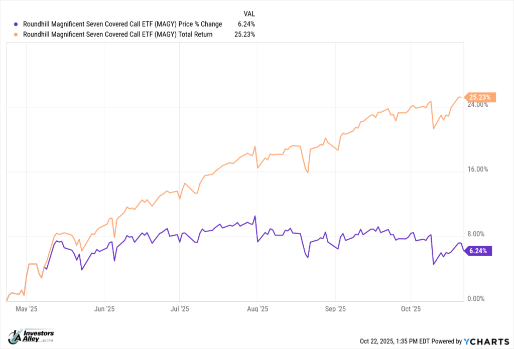 MAGY launched on April 23, 2025. Here is the chart of the share price and total return since the IPO: