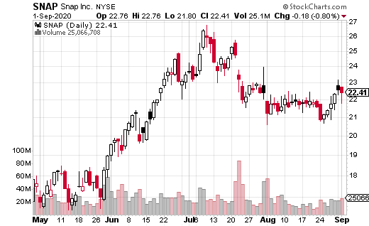 At least one well-capitalized trader agrees that SNAP is a reliable, long-term covered call candidate. The trader purchased 1 million shares of SNAP at $22.42, while simultaneously selling 10,000 January 2022 30 strike calls for $3.05.