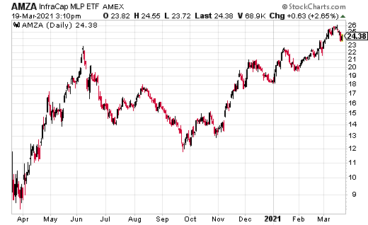 Ultra-high-yield ETF, InfraCap MLP ETF (NYSE: AMZA) has been a great income investment for my Dividend Hunter newsletter subscribers. New subscribers typically ask how this fund can pay dividends to support the 18% yield, and is there a risk of a dividend cut?