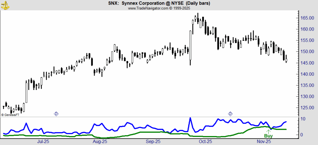 A clear example appeared earlier this month. The indicator triggered a buy signal in TD SYNNEX Corporation (SNX). The next day it generated a sell signal as the volatility pattern shifted again. That trade captured a gain of about 1.7% in just one day.