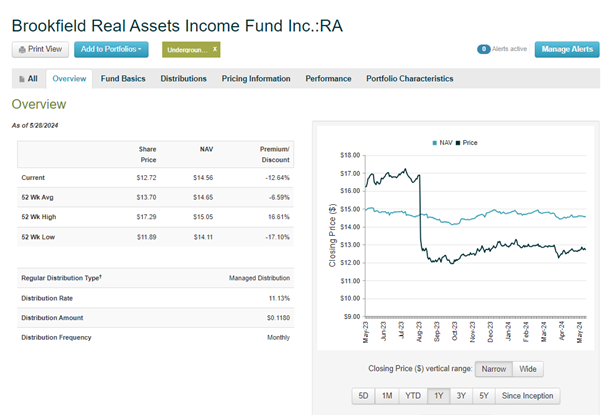 Shares of Brookfield Real Asset Fund are also trading below the buy limit price of $ 13.25.