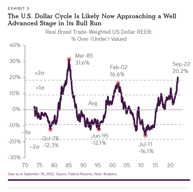 The current conditions for emerging market debt look like they have in previous periods where emerging market local debt has rallied. The currencies are cheap relative to developed markets, and the yields of government and high-quality corporate bonds are higher.