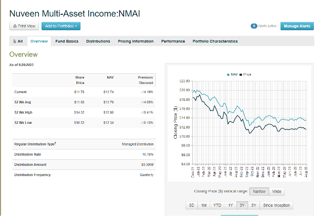 This fund is trading at a 14.5% discount to NAV and yields 10.6%. The fund has equity positions in companies that own real assets like real estate and energy infrastructure, as well as high-yield debt issued by companies that own real assets. Several activists, including Saba Capital, hold large positions in the shares.