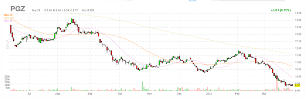 The market’s fear of private investment has caused put the shares at a discount to the net asset value of 23%. At the same time, most of the projects owned by the fund are throwing off large amounts of cash, and the shares are yielding 9.5%. Dividends are paid monthly and are reported on IRS Form 1099. Once again, the magic of closed-end fund accounting turns partnership income into ordinary dividends, with no K1s or tax hassles.