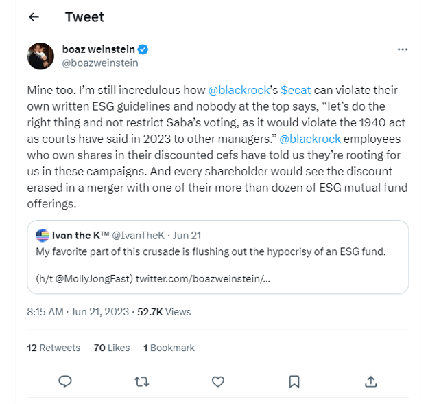 Tortoise was once thought to be too big to tackle for activists, but Boaz Weinstein has laid that idea to rest, and all closed-end fund managers and sponsors are now targets if the discounts to NAV of these funds are too wide.