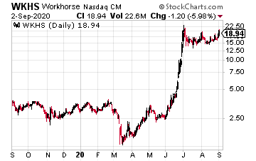 Workhorse Group (WKHS) is pushing higher, too. Not only did it recently enter into a deal with Ryder, it’s now in a strategic agreement with Hitachi. “With Hitachi’s innovation and invaluable expertise in EV technology, smart factory automation and digital technologies, Workhorse is primed to build on our early leadership position as the only last-mile EV distributor selling vehicles for commercial use across the country,” as noted by CEO Duane Hughes.